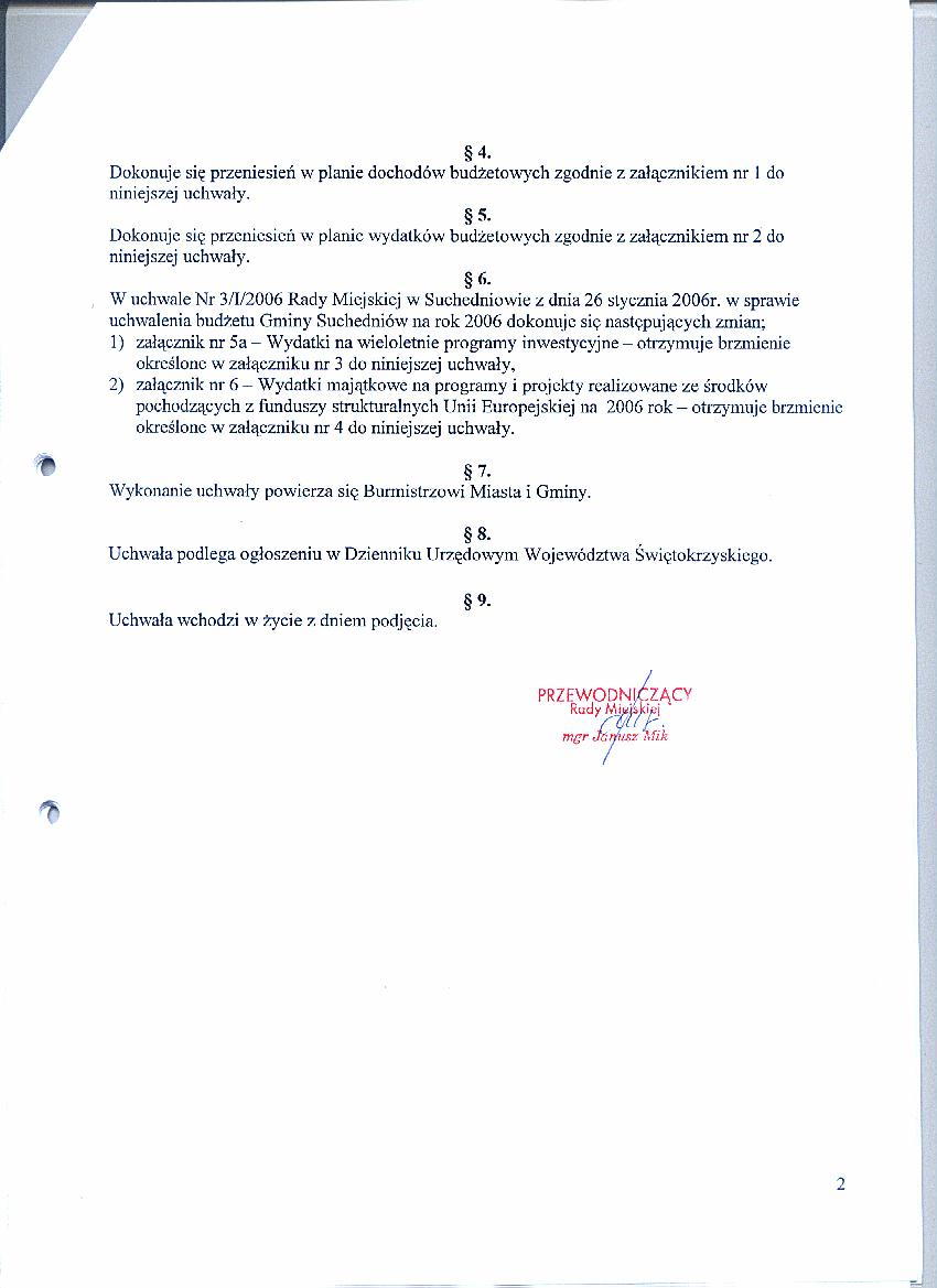 Uchwała Nr 11/III/06 - w sprawie zmian w budżecie Gminy Suchedniów na rok 2006