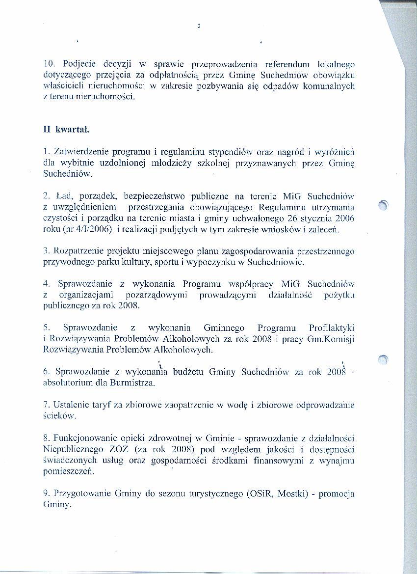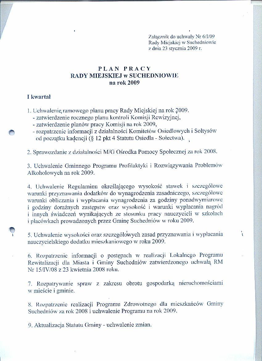Uchwała Nr 6/I/09 - w sprawie ramowego planu pracy Rady Miejskiej na 2009 rok