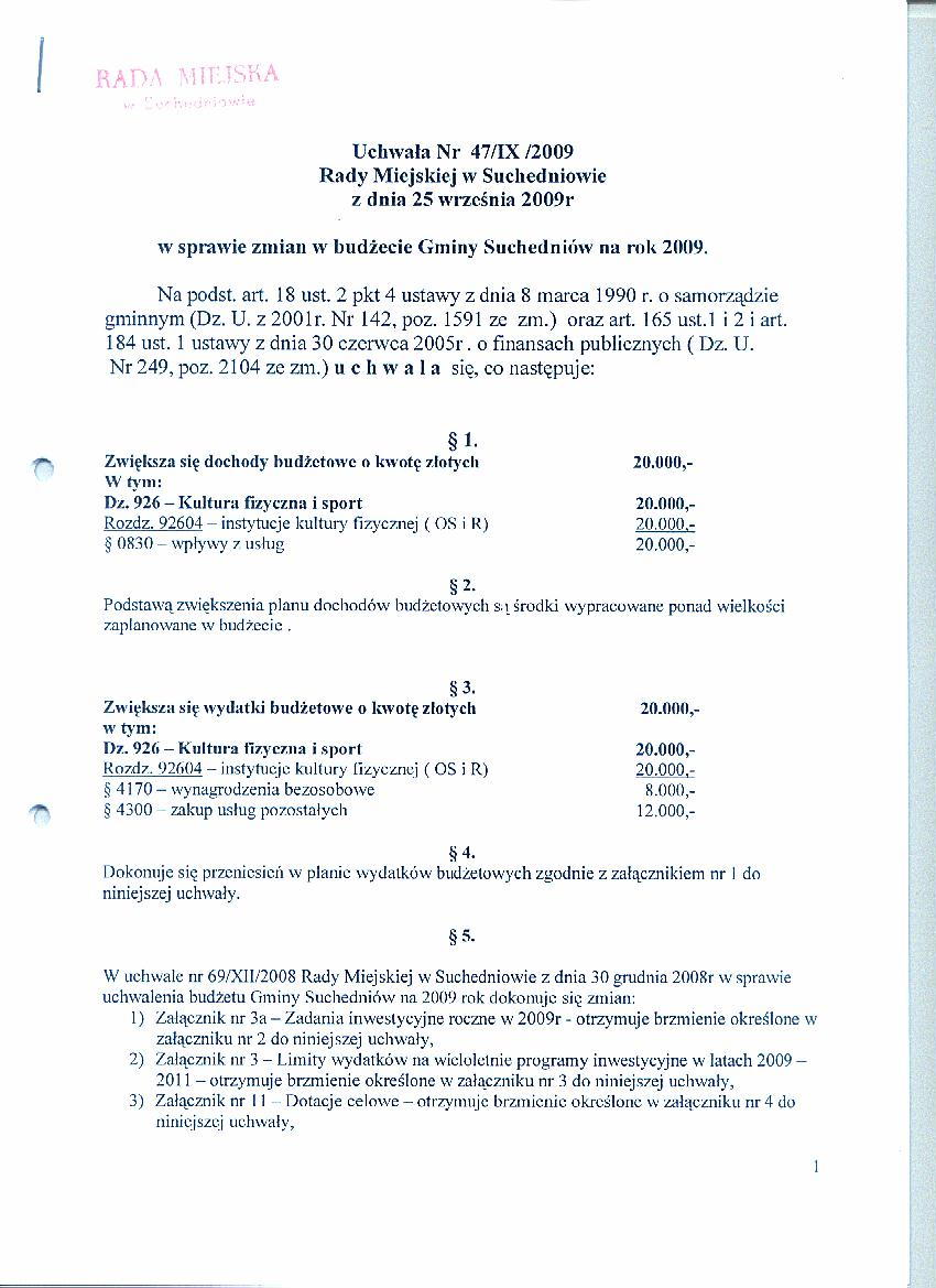 Uchwała Nr 47/IX/09 - w sprawie zmian w budżecie Gminy Suchedniów na rok 2009